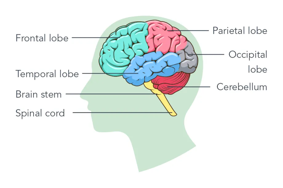 - Cerebellum - the back part of the brain and controls movement, balance and coordination.