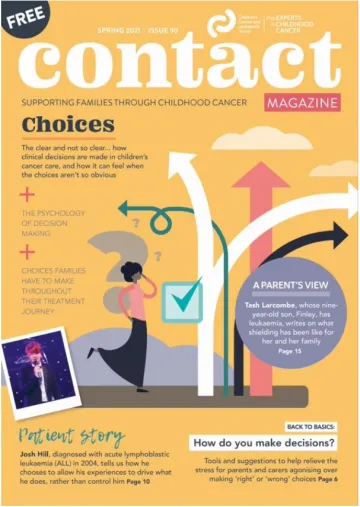 Contact is now 20 pages full of interesting features, thoughts, ideas and information for all those affected by childhood cancer. Our first issue covers the theme of ‘Choices’. Our lives are made up of an infinite amount of choices that we make every day. Making a choice with confidence based on the options we have at the time is the only sensible thing we can do and sometimes there is no right or wrong, just different. In this issue, we look at the choices faced by families and professionals while caring for and treating a child with cancer.