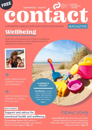 It can be a challenge to go on holiday when a child has cancer, but it's a chance for families to leave the clinical routine behind and escape for a few days. Our helpful guide on pages 8-9 offers support and advice on planning a holiday. Sunny days can always help lift our mood and improve our emotional wellbeing even when life isn't going as planned. Elsewhere, psychologist Dr Amandeep Samrai gives expert tips on self-care and coping strategies and explains where to access support.