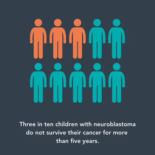 Neuroblastoma is a type of cancer that mostly affects children under the age of five. It is one of the more common childhood cancers, which means that it is sometimes easier to research than rarer cancers as more patients per year are diagnosed. Years of research have contributed to an overall five-year survival rate of around 70%. This means that, five years after diagnosis, seven out of ten children with neuroblastoma will still be alive.