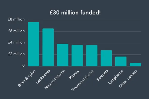 Of course, we couldn’t have done this without the other charities in the CCLG Research Funding Network, who trust us to select and run top-tier research projects. Our long-term partnership with The Little Princess Trust has been especially vital in reaching this milestone, with around £25 million of this research funded by the LPT and administered by CCLG.