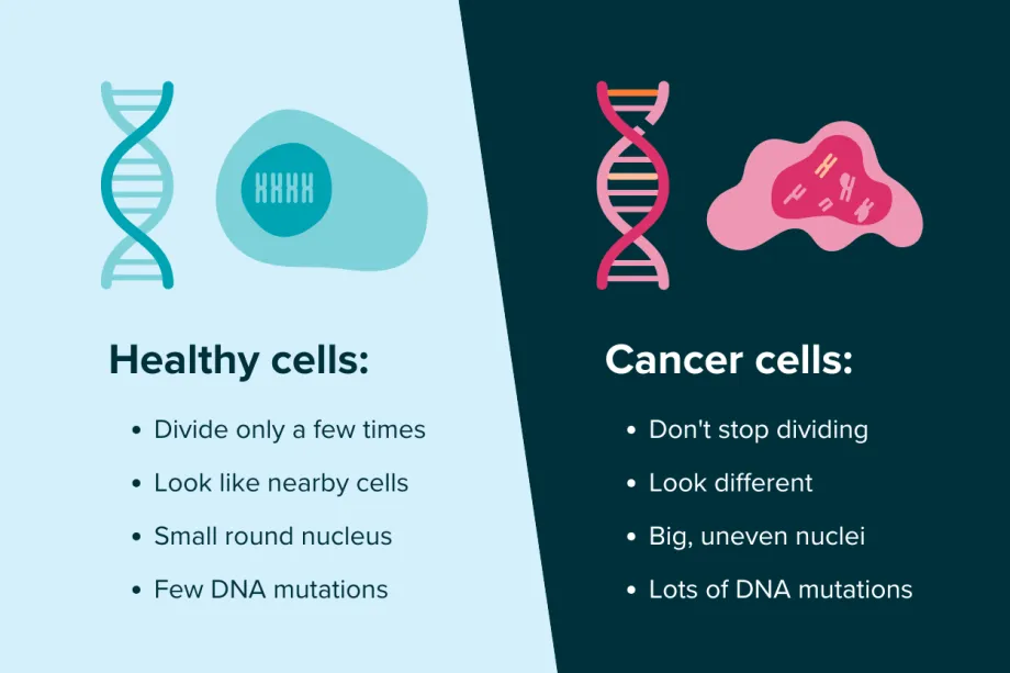 The differences between healthy cells and cancer cells.