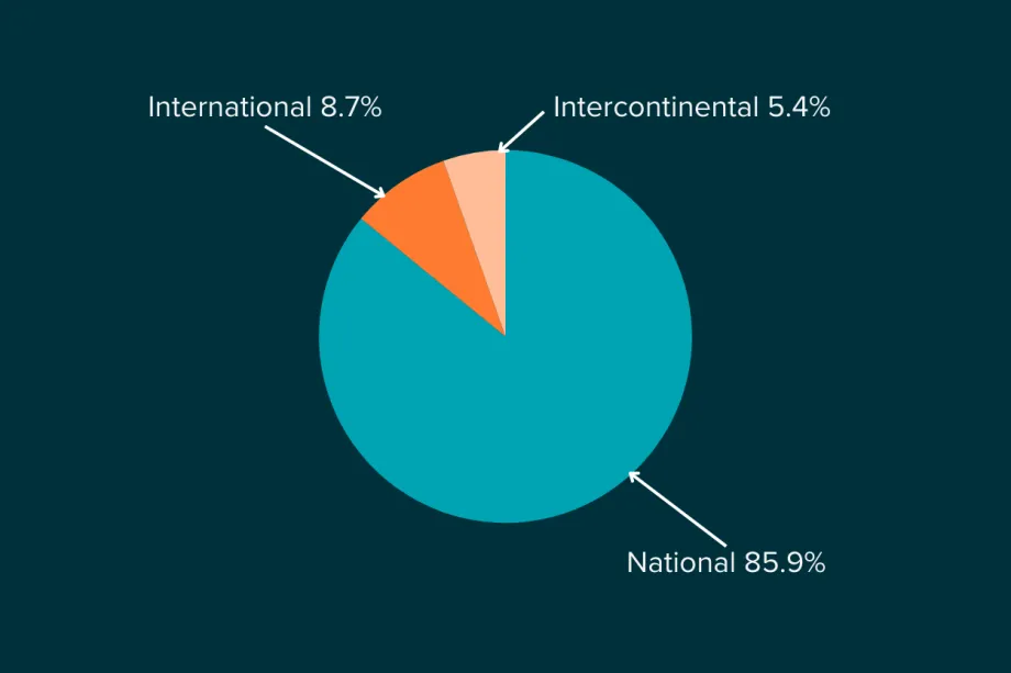 Most research isn't international - only 14.1% of childhood cancer clinical trials open in more than one country.