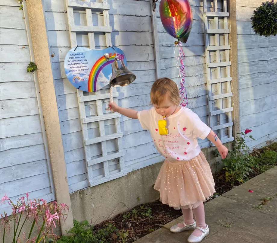 Evie's treatment worked exceptionally well and she was able to ring the end-of-treatment bell on her third birthday in December 2021.