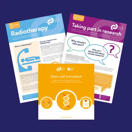 We produce a range of leaflets and factsheets, for teenagers and young adults such as our ‘Radiotherapy’ and ‘Taking part in research’ booklets.