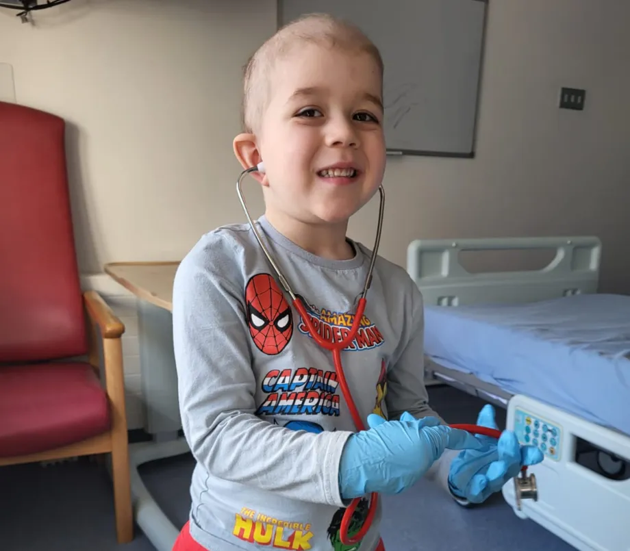 Sean is currently undergoing maintenance chemotherapy and is due to ring the end-of-treatment bell in October 2026. This experience has been traumatic for him. He endured significant pain and found the numerous tests and medical procedures challenging. However, he’s adapted quickly to his situation. His life largely revolves around the hospital and is obsessed with playing doctors.