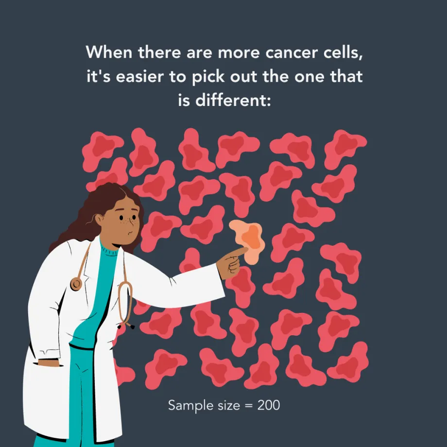 But if you had 200 samples, and only one didn’t respond to the medicine, you could be a lot more confident that you had found a useful medicine to treat children with cancer.
