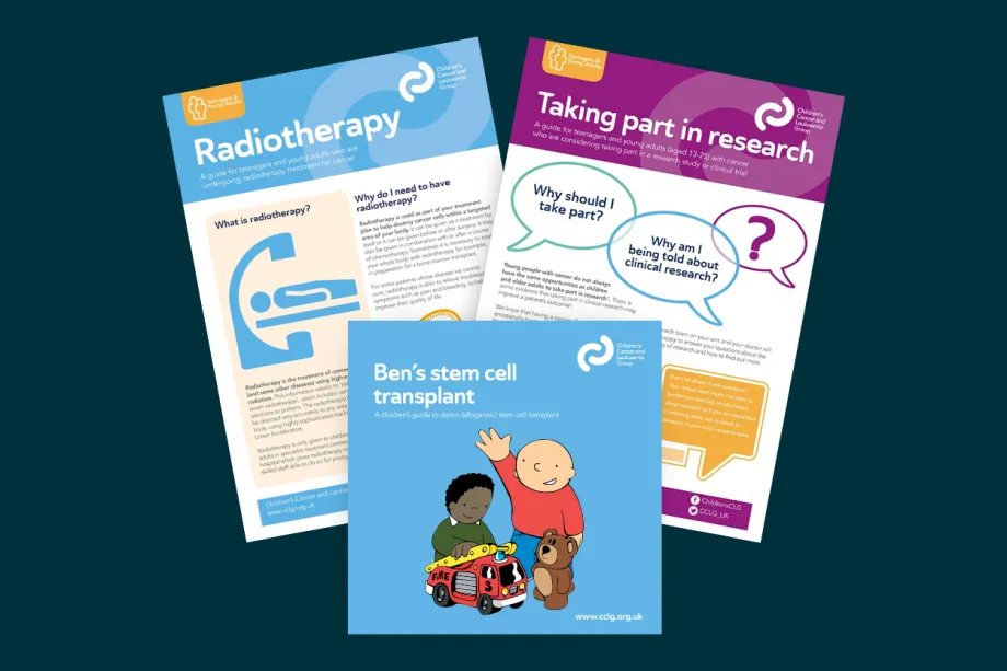 We produce a range of leaflets and factsheets, such as ‘Ben’s stem cell transplant’, which doctors and parents can use to help children understand their treatment and what it means. We also produce information for teenagers and young adults.