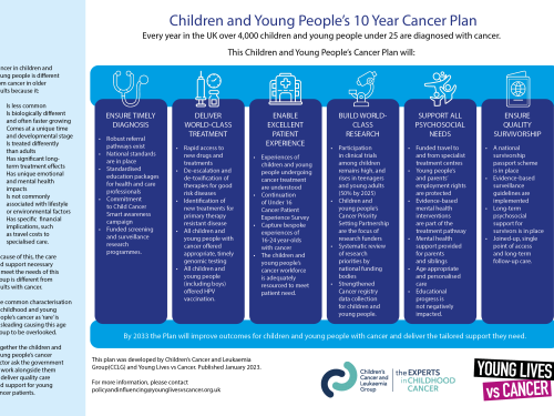 The Children and Young People’s Cancer Plan has been developed by two leading charities in childhood and young people’s cancer; Young Lives vs Cancer and the CCLG: The Children & Young People’s Cancer Association.